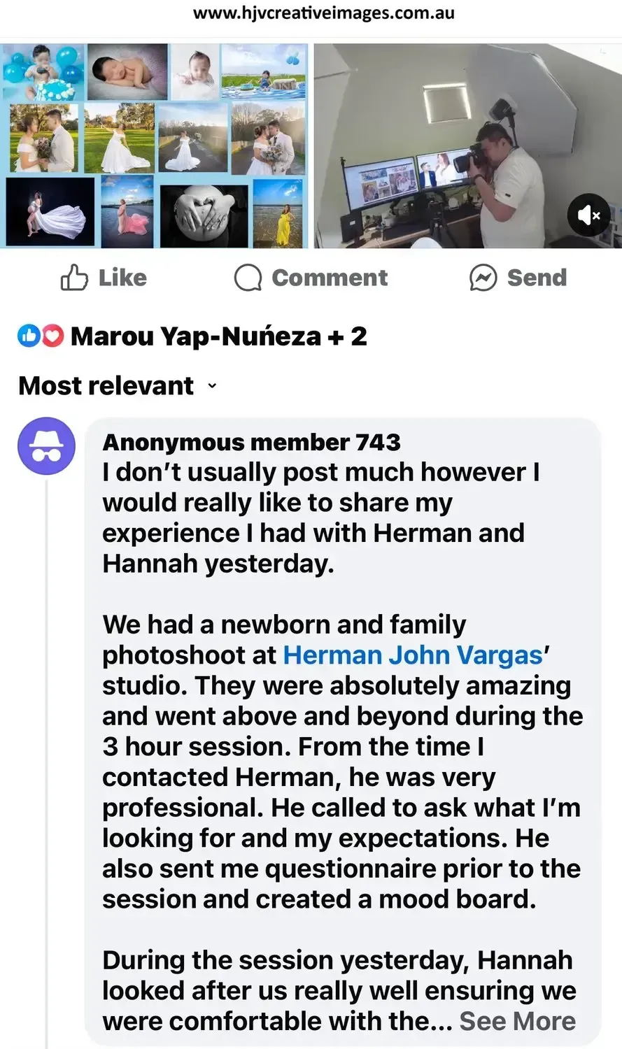 I don’t usually post much however I would really like to share my experience I had with Herman and Hannah yesterday. We had a newborn and family photoshoot at Herman John Vargas’ studio. They were absolutely amazing and went above and beyond during the 3 hour session. From the time I contacted Herman, he was very professional. He called to ask what I’m looking for and my expectations. He also sent me questionnaire prior to the session and created a mood board. During the session yesterday, Hannah looked after us really well ensuring we were comfortable with the temperature there, offered us drinks and space to settle down the newborn. They had a lot of newborn props so we could take a few different styles.