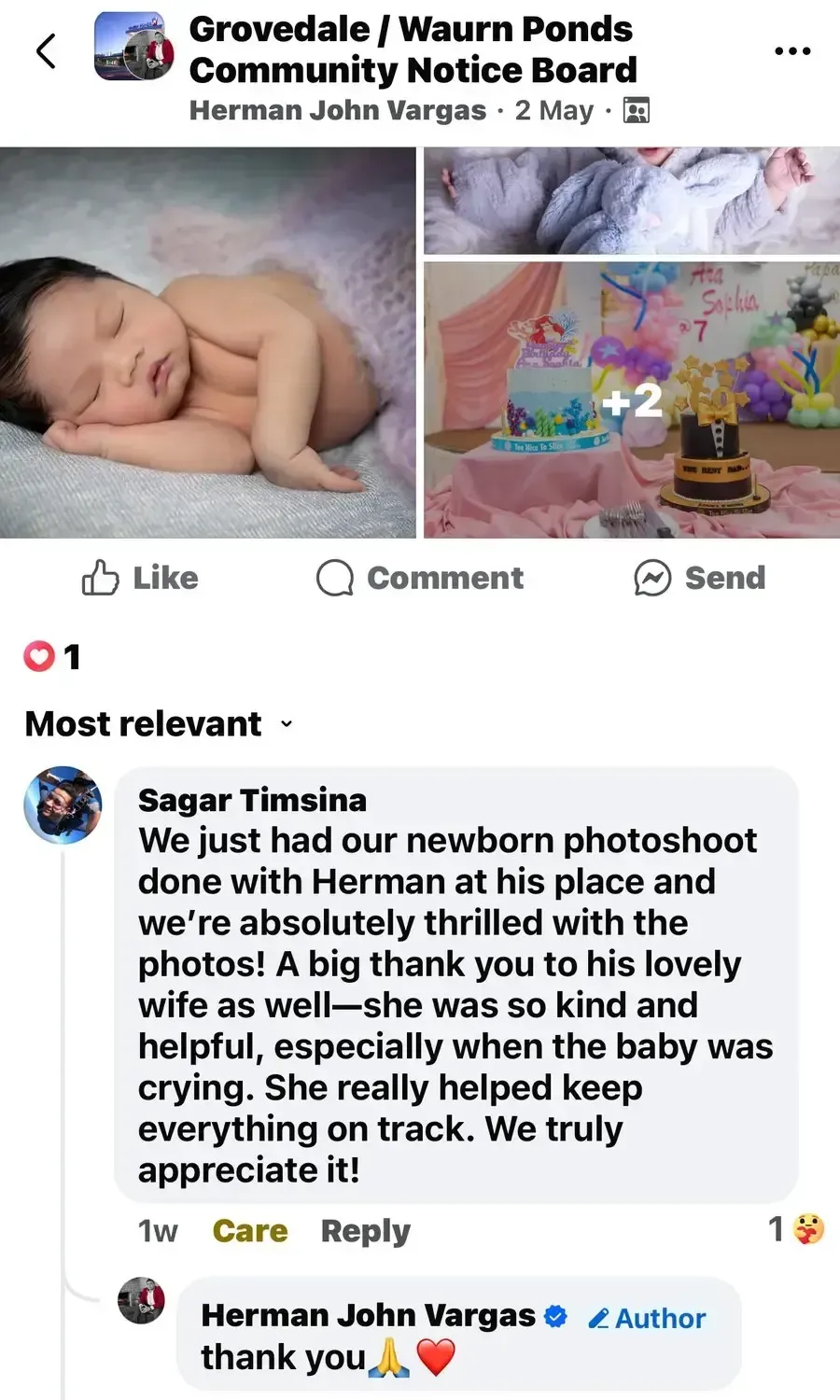 We Just had our newborn photoshoot done with Herman at his place and we're absolutely thrilled with the photos! A big thank you to his lovely wife as well-she was so kind and helpful, especially when the baby was crying. She really helped keep everything on track. We truly appreciate it!